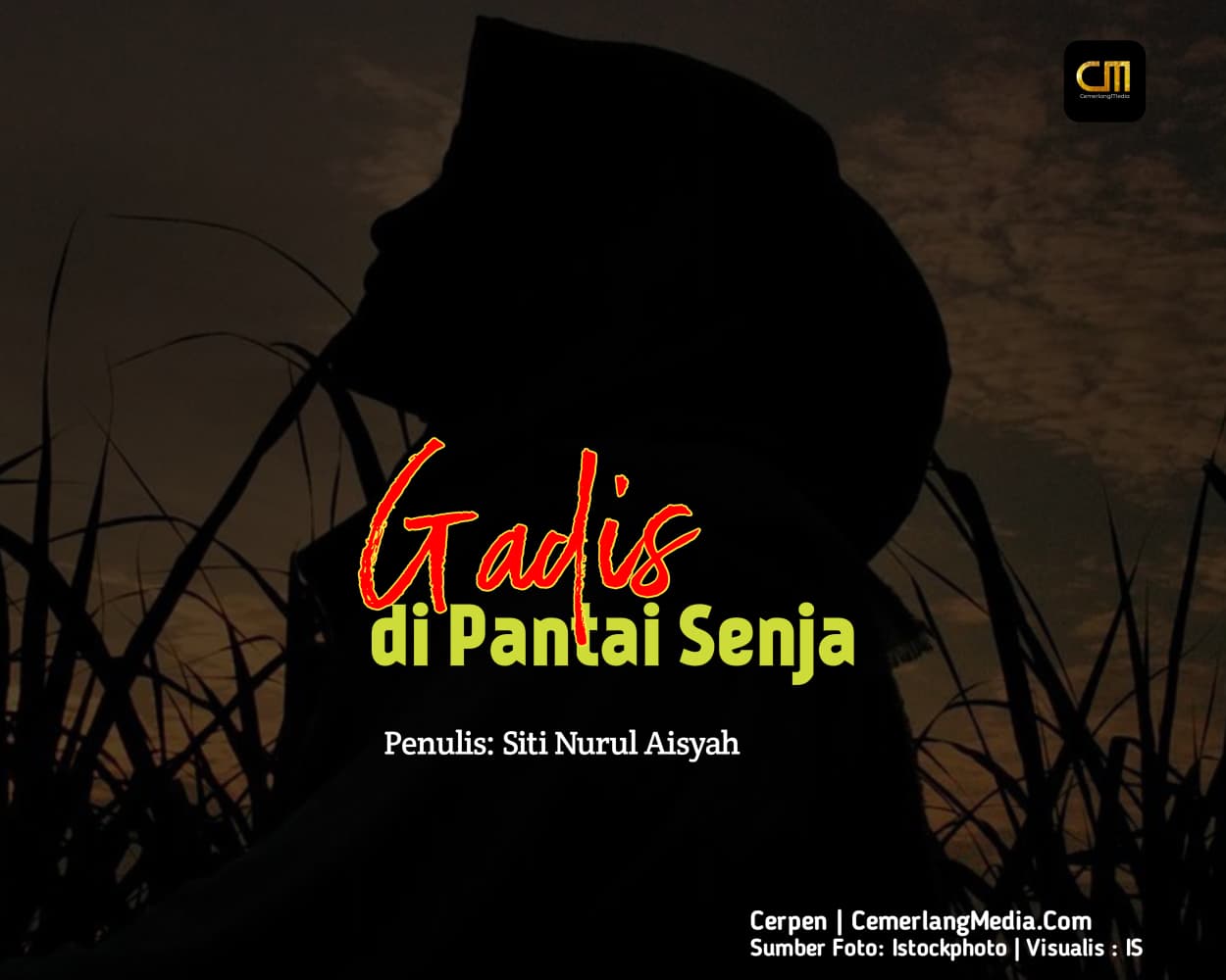 CemerlangMedia.Com — Mentari perlahan tenggelam di ufuk barat, meninggalkan guratan jingga yang memantul di permukaan laut. Ombak berkejaran menuju pantai, bunyi air menyapu pasir. Di sana, seorang gadis berdiri, gaun putihnya berkibar tertiup angin. Kerudung panjangnya terjuntai, sesekali menutupi wajah yang teduh,, tetapi murung.