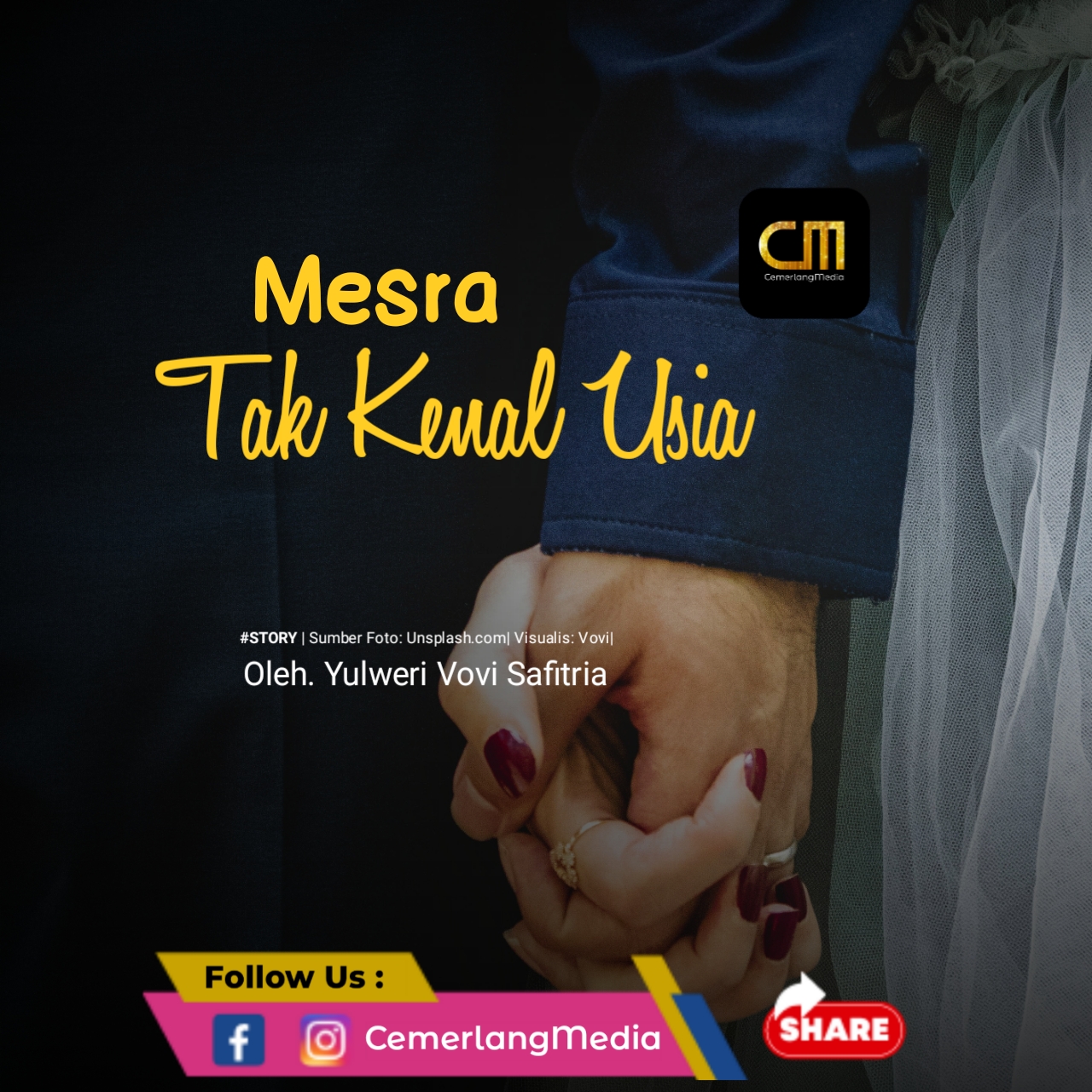 Yuk, gandeng pasangan kita, mesralah dengannya, sebab mesra tidak hanya saat usia muda, bergandengan tak hanya ketika muda, tapi gandenglah ia hingga ke jannah! [CM/NA]