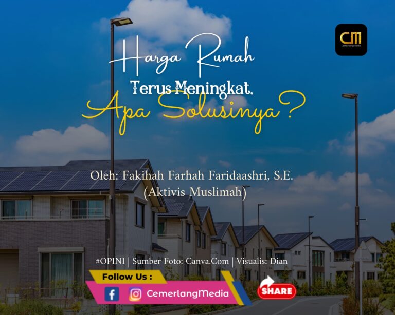 CemerlangMedia.Com — Kawula muda tengah terancam dengan julukan “homeless millennial generation.” Bagaimana tidak, harga rumah di berbagai wilayah Indonesia terus meningkat. Dengan daya beli yang rendah, masyarakat menjadi tidak mampu untuk membeli rumah yang harganya selangit. Padahal rumah alias kebutuhan papan merupakan salah satu dari tiga kebutuhan pokok hidup manusia. Lantas, harus bagaimana?