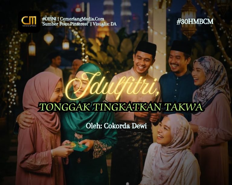 CemerlangMedia.Com — Perayaan Idulfitri telah berlalu. Akan tetapi, euforia suasana lebaran seharusnya tidak ikut berlalu. Perayaan Idulfitri tidak hanya sebatas perayaan kemenangan berpuasa, saling bermaaf-maafan saja, atau sekadar saling silaturahmi saja, dan makan-makan bersama. Perayaan Idulfitri seharusnya menjadi tonggak kesadaran umat muslim akan adanya peningkatan ketakwaan kepada Allah Swt..