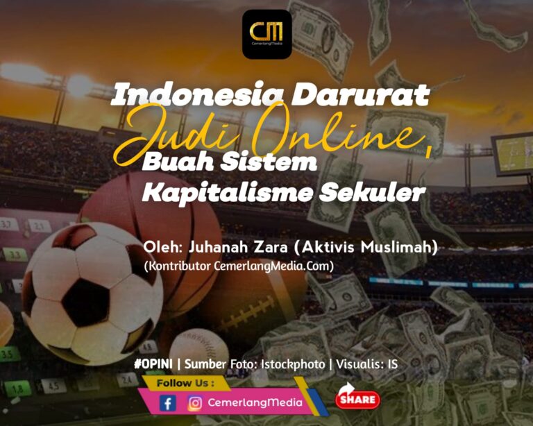 CemerlangMedia.Com — Dilansir dari CNBC (17-10-2023), Kementerian Komunikasi dan Informatika (Kominfo) menyatakan bahwa Indonesia darurat judi online karena telah merebak sangat pesat di tengah-tengah masyarakat. Mereka pun meminta masyarakat untuk segera melaporkan bila menemukan situs judi online di gawainya. Informasi tersebut menjadi himbauan terhadap masyarakat untuk membantu pemberantasan judi online. Tanpa disadari, negara sebagai penanggung jawab asli persoalan ini melalui pihak kepolisian, seolah tidak dapat mengatasinya.