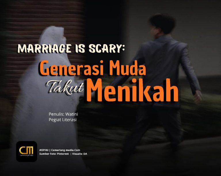 CemerlangMedia.Com — Beda zaman, beda tantangan. Beda generasi, beda filosofi. Meskipun generasi muda terkenal menggebu-gebu, setiap tantangan akan mereka lalui dengan penuh semangat dan tekad yang membara. Akan tetapi, berbeda dengan perihal pernikahan, mereka seolah mundur teratur dan menganggap pernikahan sebagai momok yang menakutkan. Apalagi banyak berita berseliweran tentang pernikahan muda yang kandas dan berujung perceraian. Alhasil, mereka lebih memilih fokus dalam pekerjaan dan meraih impian karena menganggap pernikahan tidak selamanya indah.