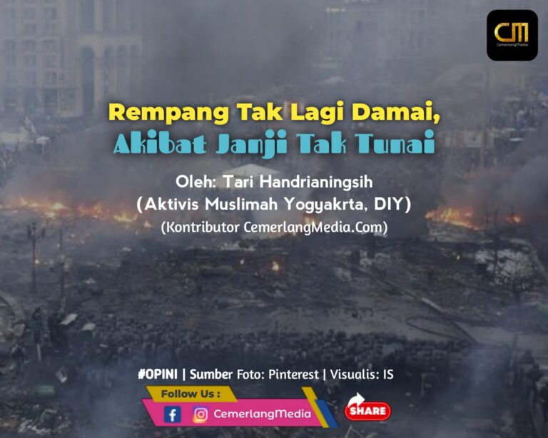 CemerlangMedia.Com — Bentrokan terjadi antara warga dan polisi terkait rencana Proyek Strategis Nasional Rempang Eco-City di Pulau Rempang, Batam, Kepulauan Riau karena warga menolak relokasi.