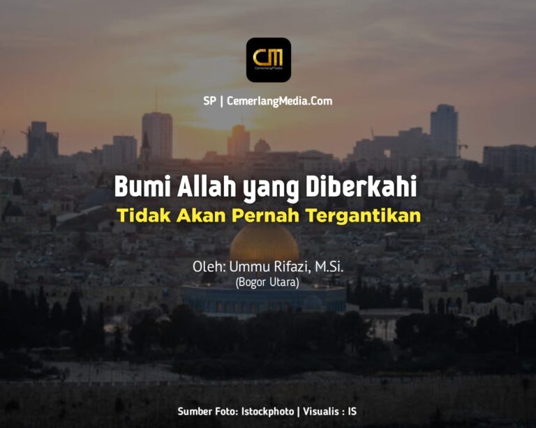 Palestina adalah bumi yang diberkahi Allah Taala, anugerah bagi seluruh kaum muslimin. Tanah ini tidak bisa tergantikan dengan wilayah manapun di muka bumi ini. Tanah air kaum muslimin ini harus diperjuangkan. Bir-ruh, bid-dam, nafdika, ya Aqsha. Dengan jiwa, dengan darah, kami berkorban untukmu, wahai Aqsa.