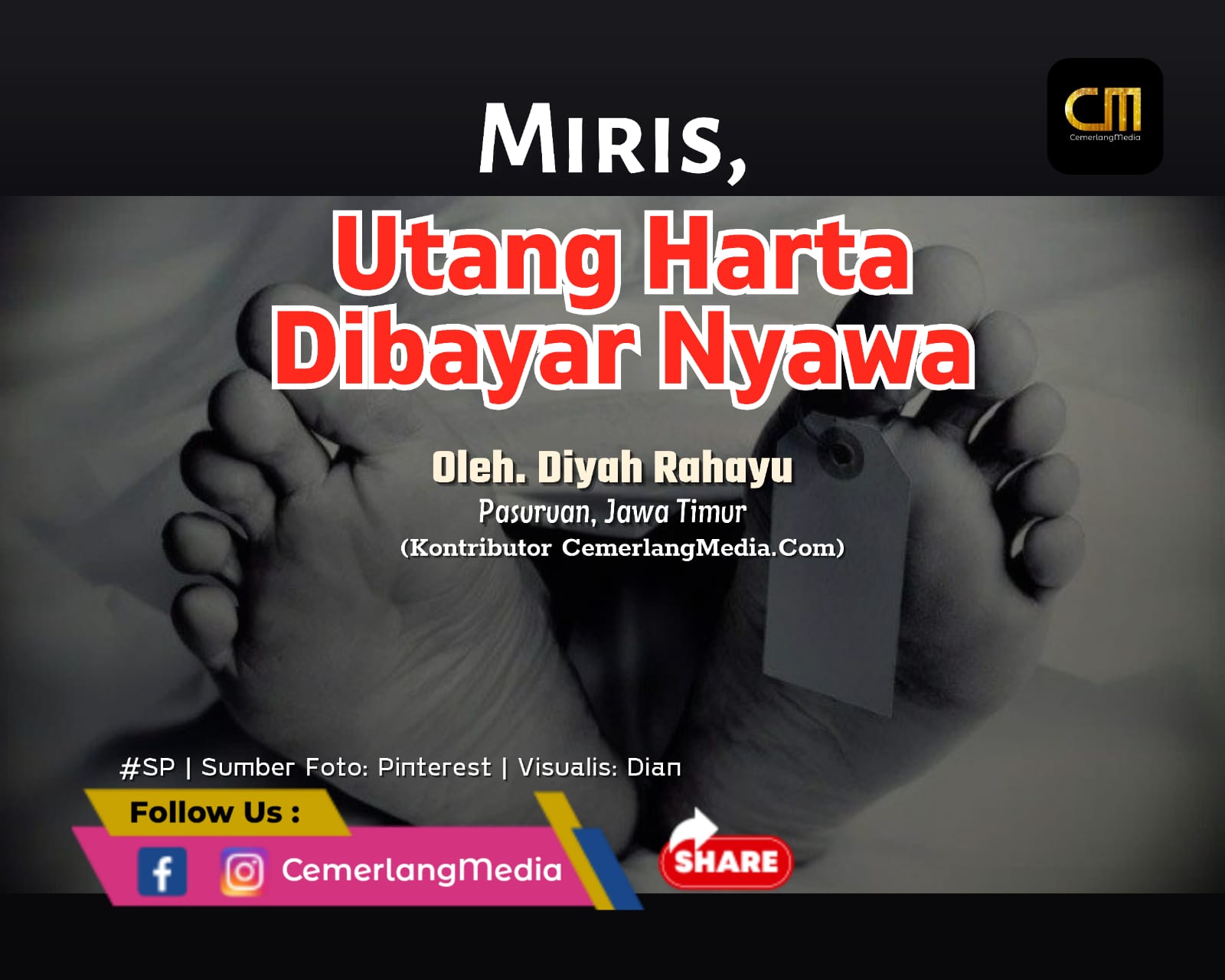 Sungguh memprihatinkan, kehidupan yang serba keras dan perekonomian yang makin sulit membuat orang tega melakukan tindakan sadis. Perilaku manusia sudah tak lagi berpegang teguh pada prinsip kemanusian dan norma agama. Akal pikiran seolah sudah tertutup oleh akhlak yang tidak beradap. Kekejaman hingga tega menghabisi nyawa seseorang dengan mudahnya menjadi hal yang biasa.