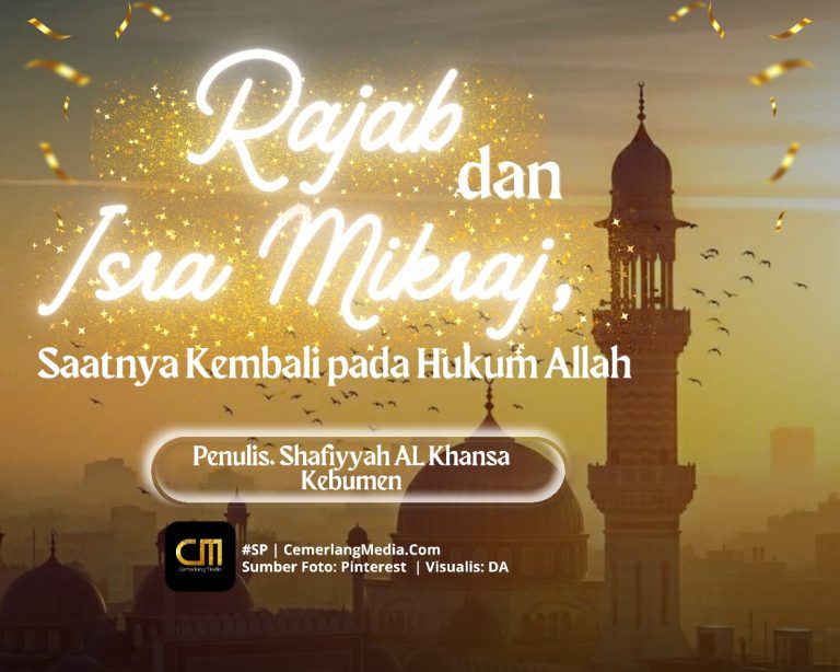 CemerlangMedia.Com — Rajab merupakan salah satu bulan haram, bulan mulia yang di dalamnya terjadi banyak peristiwa dan hikmah kehidupan. Di bulan inilah Rasulullah saw. melakukan perjalanannya dari Masjidilharam ke Masjidilaqsa, hingga ke Sidratul Muntaha atau biasa dikenal dengan istilah Isra Mikraj.