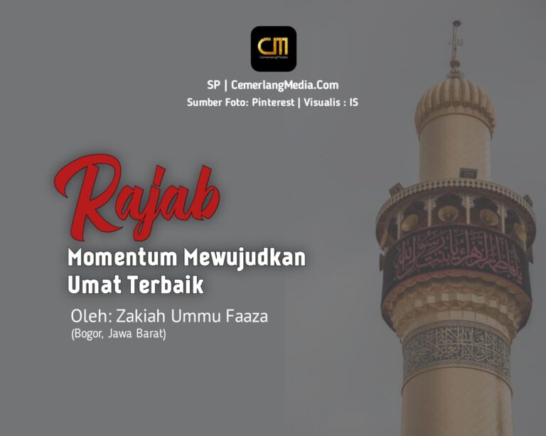 CemerlangMedia.Com — Rajab adalah salah satu bulan haram (mulia) dalam penanggalan Hijriyah. Umat Islam diperintahkan untuk melakukan banyak amal saleh karena pada bulan ini terdapat keutamaan serta keberkahannya. Selain itu, Rajab merupakan momentum bagi kaum muslimin untuk mengembalikan kembali dan mewujudkan predikat umat terbaik yang diberikan Allah Swt..